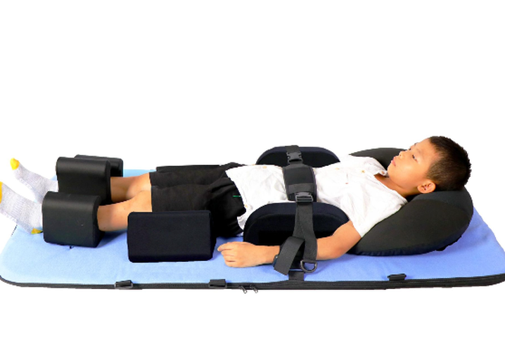 The 24-hr Positioning System, composed of cushions and wedges of various shapes, provides optimal support to maintain a correct and comfortable posture while reducing pressure on muscles and bones.