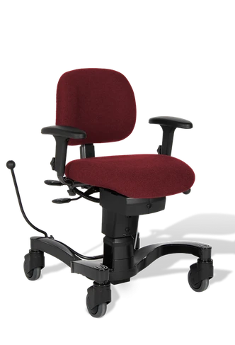 The VELA Chair’s reason for being is the same as it was back in the 70s: the central brake of the chair that provides safety and liberty to perform various activities. At the same time, the VELA Chair is a mobile chair with smooth-running wheels that allow the user to walk the chair around in a seated position.